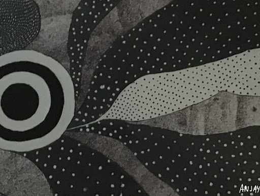 Description: An alluring array of dots, this acrylic painting combines light with dark, contrast and unity, a combination unseen in modern times.